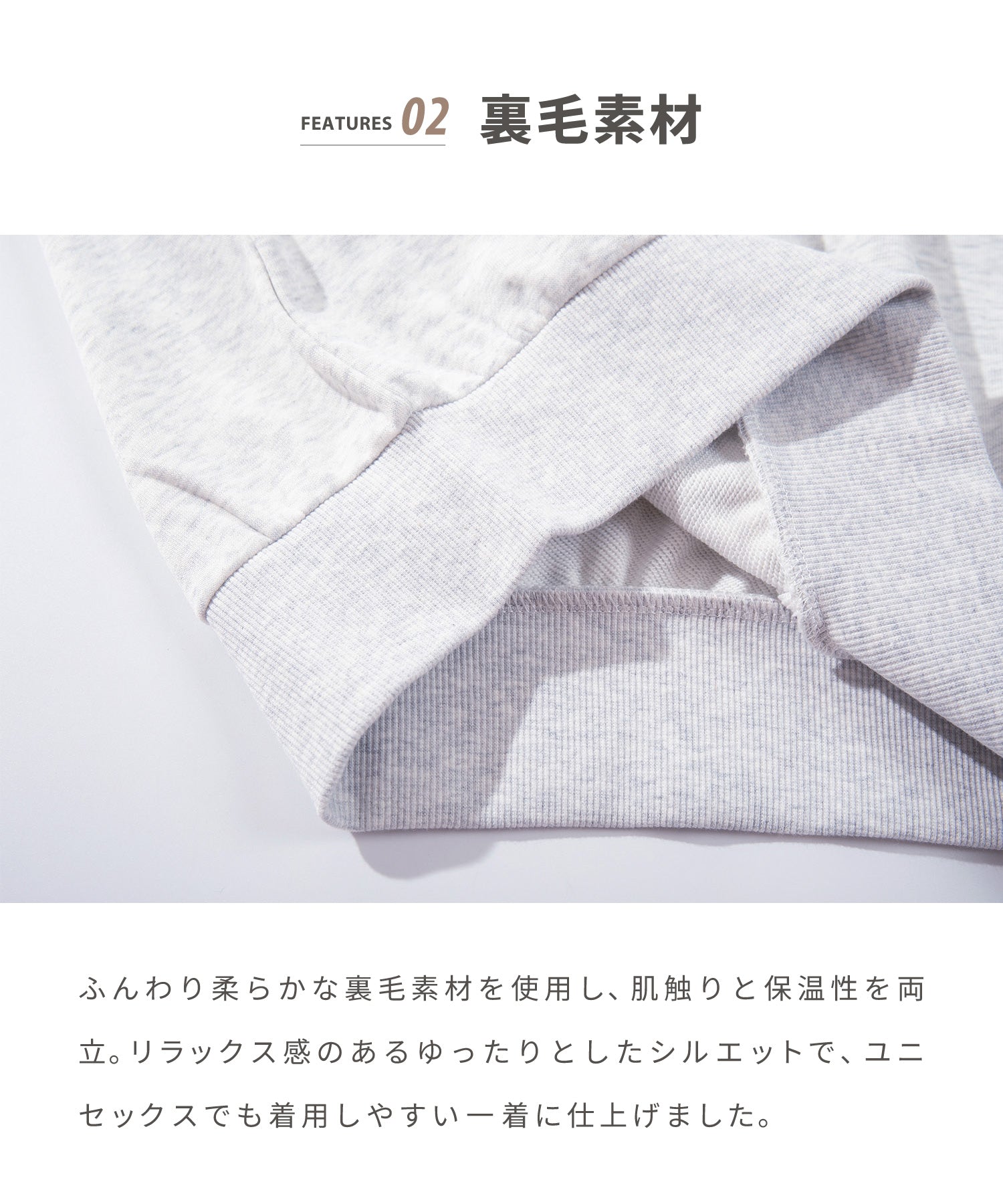 ●ふんわり柔らかな裏毛素材で、肌触りと保温性を両立